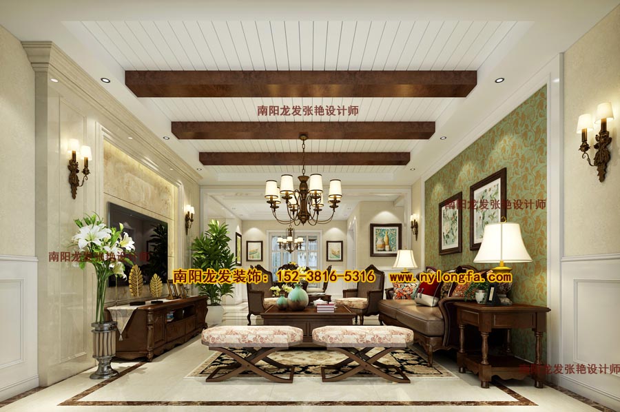 南阳绿都如意湾小区116平方田园风格装修设计作