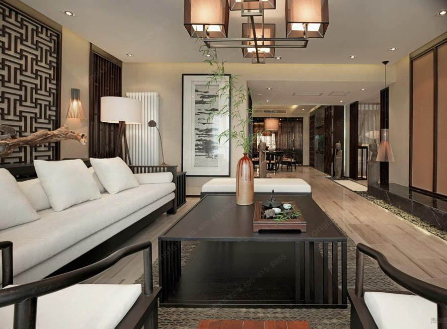 南阳大溪地小区复式楼中式风格经典效果图作品