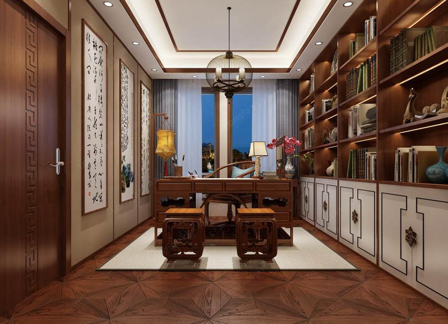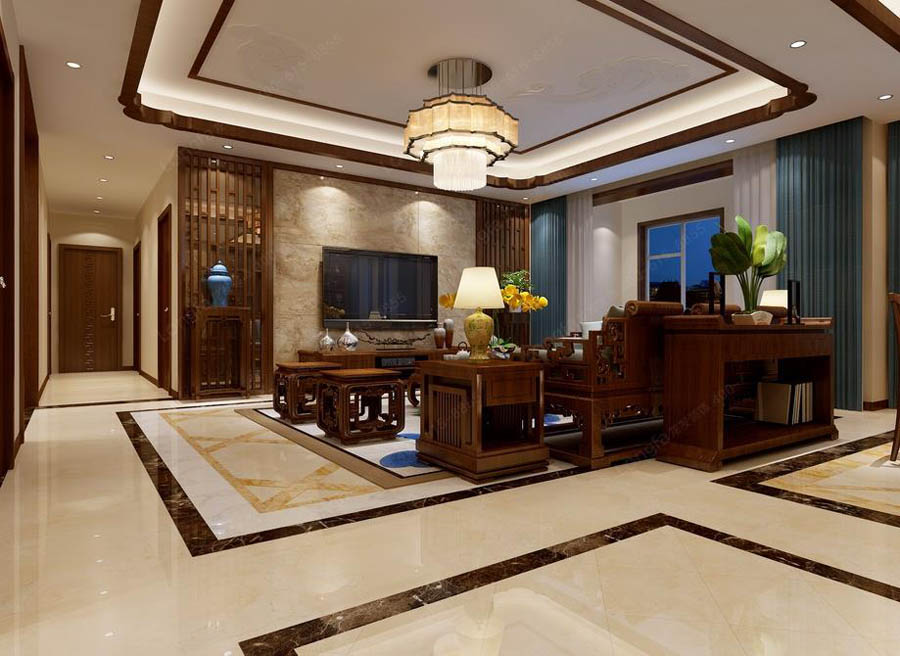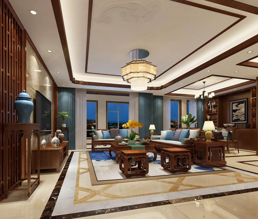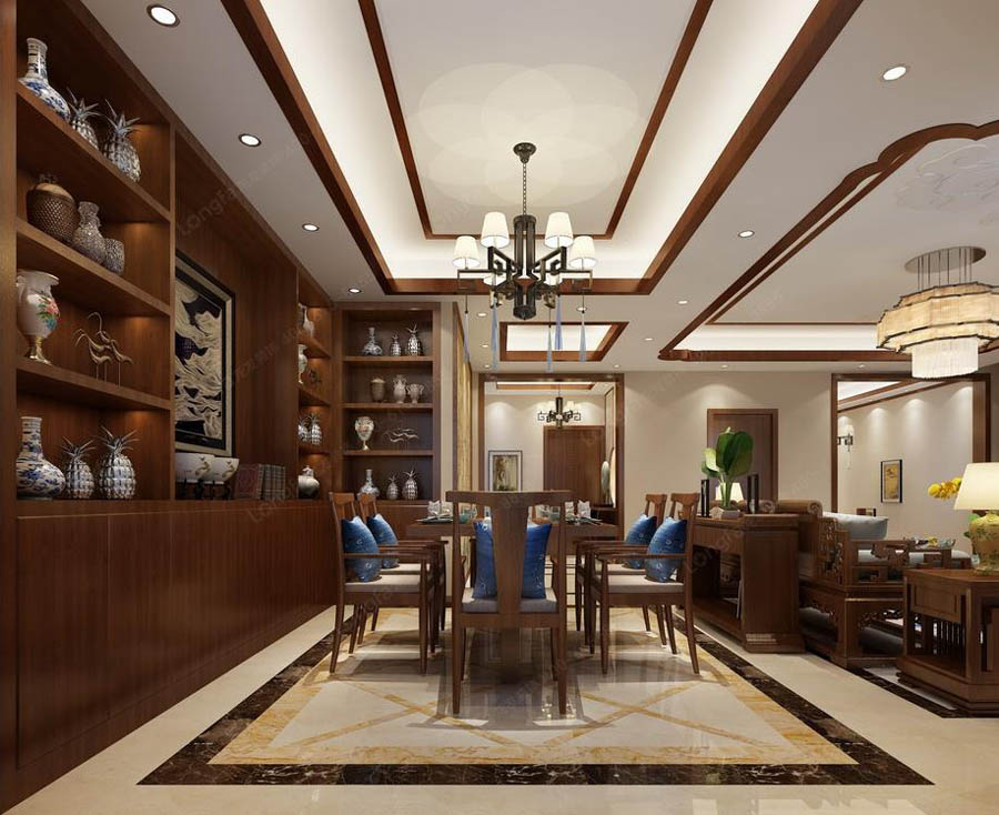 南阳美盛白河湾266平方别墅装修设计新中式作品