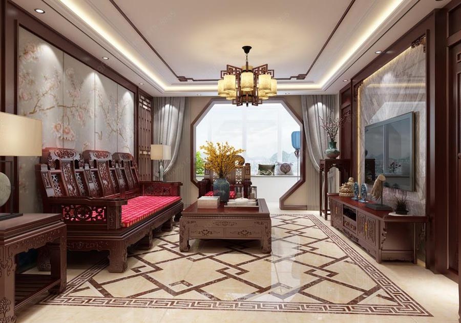 南阳凤凰城160平方户型中式风格装修设计作品