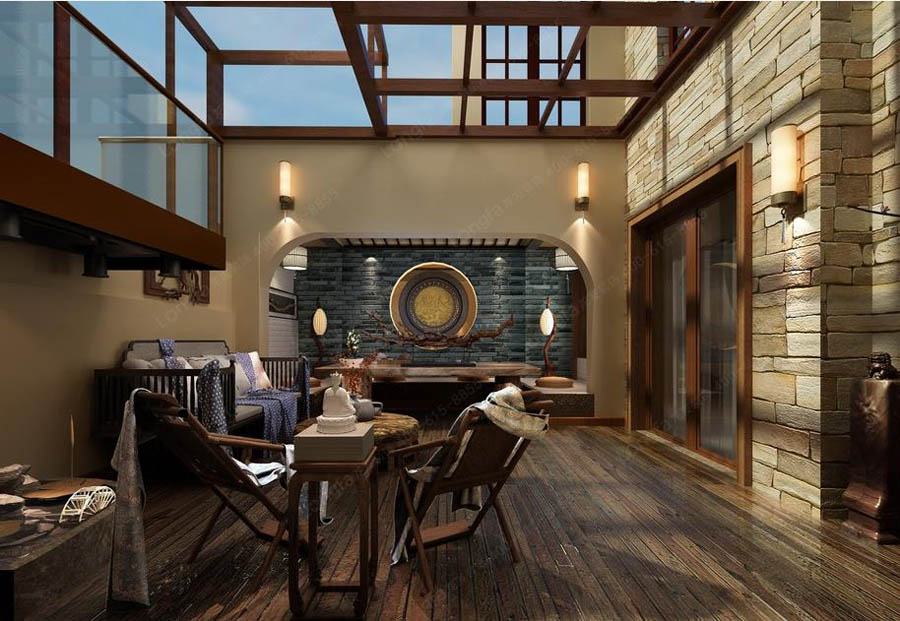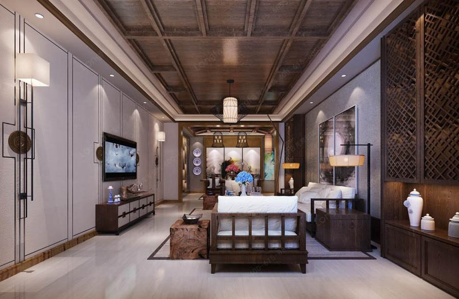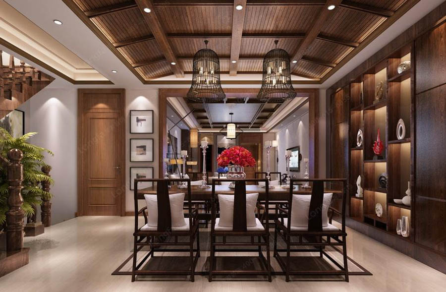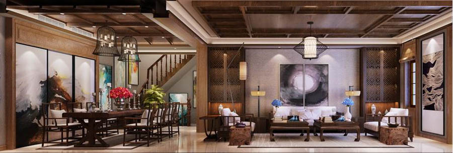 南阳大溪地小区复式楼中式风格经典效果图作品
