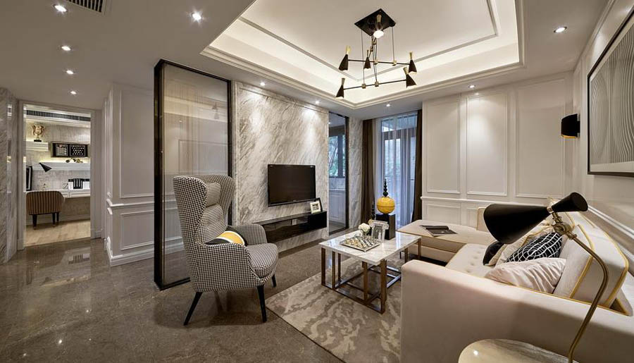 90平方的户型,打造的一套美式新古典风格的装修作品,是不是很有品位,很多人在小户型的装修中,感觉到不适合欧式或者其他复杂的风格,把风格定位放在了简约风格上,限制了一些业主对装修品位的要求;其实看过这一套图,您会发现,其实小户型,小面积,也可以适合古典风格或者欧式风格,很有档次的。如果也想要这样的装修风格作品,可以联系我们南阳龙发,热线:0377-61385659