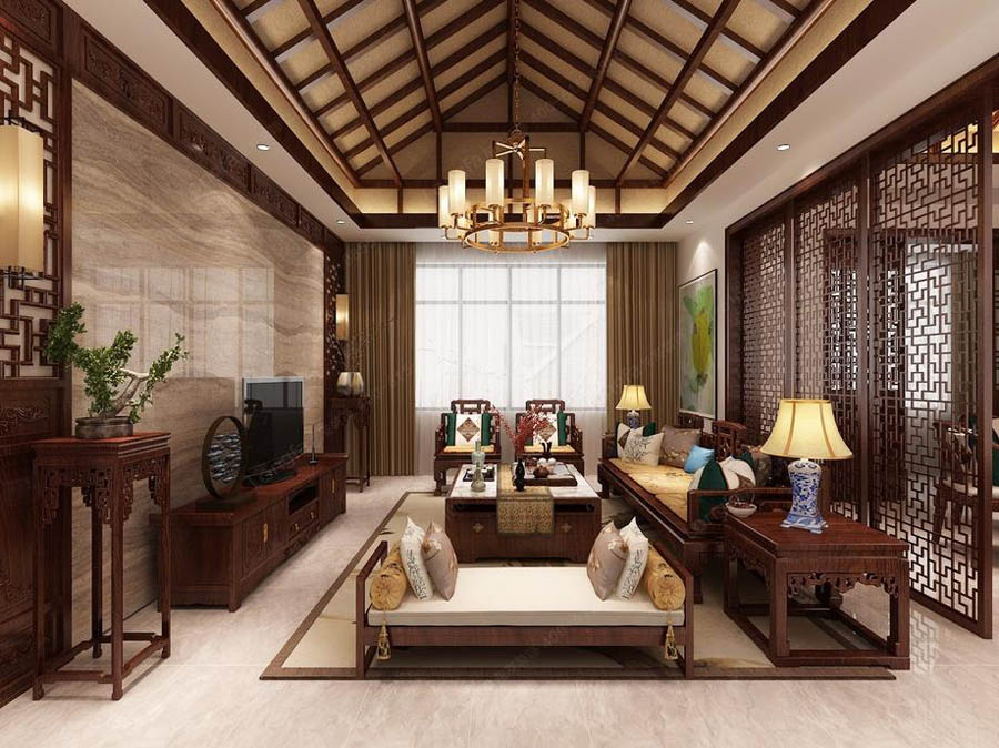 南阳建业桃花岛复式楼装修设计经典中式作品