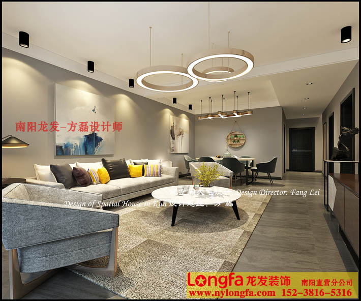 南阳龙发装饰公司绿都悦府小区装修设计方磊设计师经典设计作品,面积为160平方,复式楼的装修设计作品