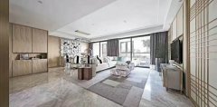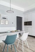 枫木色给人们一种温馨,舒适,温柔的一种木质色调和白色的结合,往往是很多北欧风格装修中客户选择的一种装修结合方式,不过这套装修在造型上,又采取了中式的背景墙结构造型...