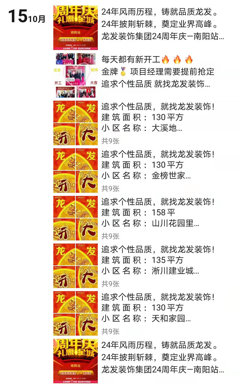 一天开工五家装修工地,这些装修工地分布在南阳大溪地,金榜世家,山川花园里,淅川建业城,天和家园等小区。我们南阳龙发装饰公司在南阳拥有高的市场占有率,在很多小区都有工地,有的小区经常...
