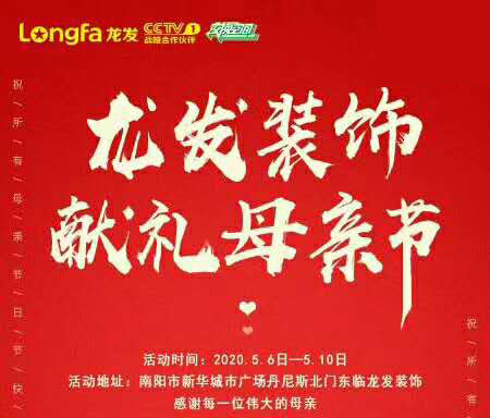 龙发装饰献礼母亲节 爱她就给她一个更环保的家 活动期间内交399元充抵3999元。 1元秒杀母亲节豪华礼品。 参与活动石膏板可享受免费升级。 ️:0377-6138 5659 南阳...
