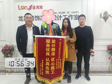 南阳凯旋公馆240平方大平层在施工工地为 龙发装饰南阳公司 设计师王静燕老师,王磊项目部,赵新阳营业经理送来锦旗!客户的满意就是我们不懈的追求! 追求个性品质,就找龙发装...