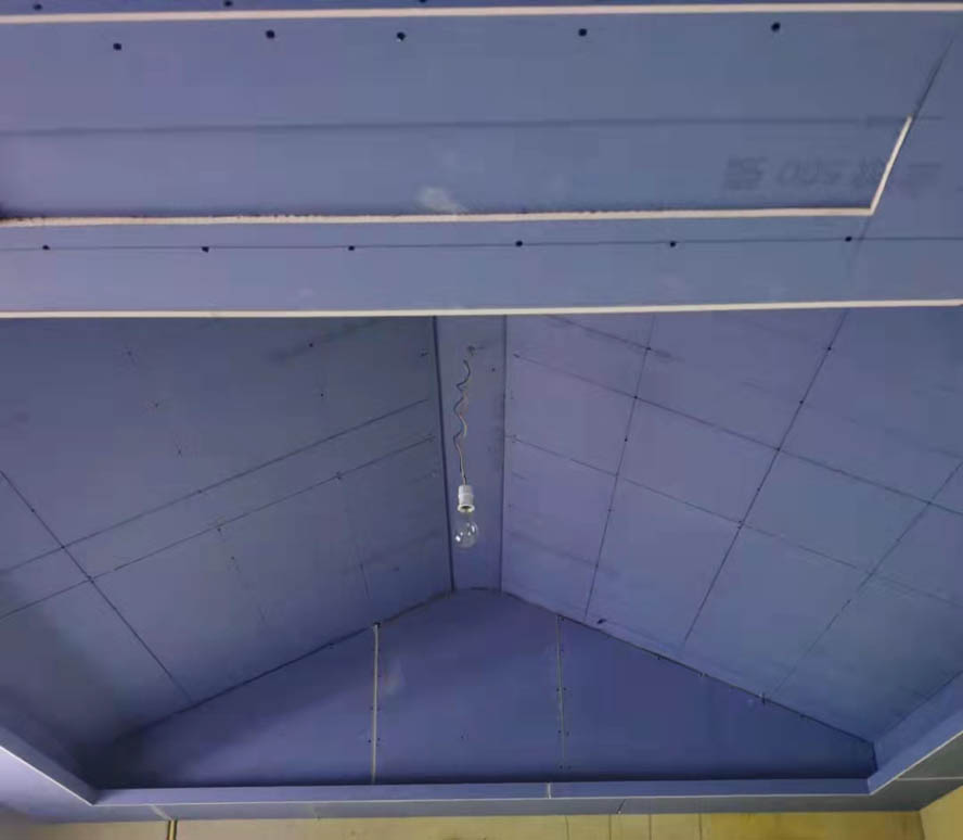 吊顶的施工,可以看到这个挑高的吊顶空间,非常大气,也不是普通的装修工人可以施工和做的,经典的设计,值得参观从这里可以看到墙面的线路改造,以及无主灯设计的轨道安装楼梯的位置和楼梯的效...