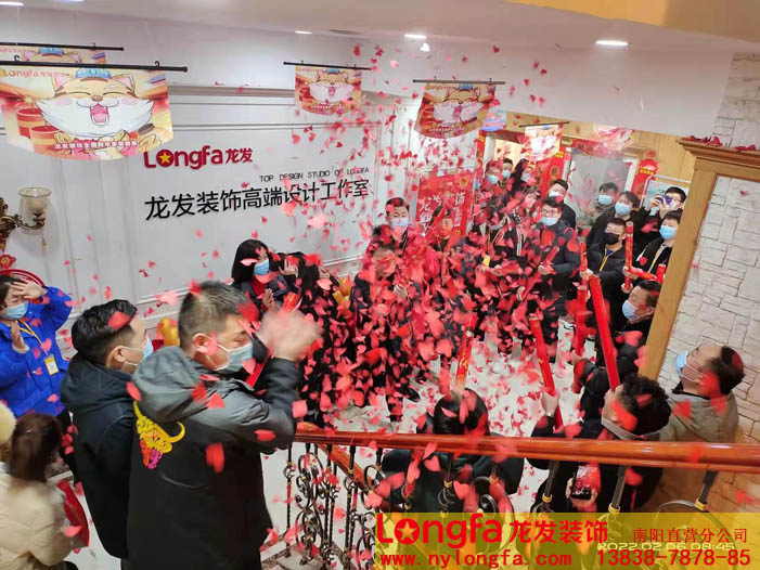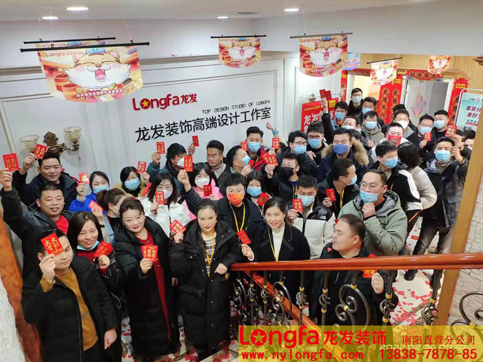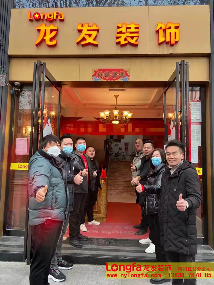 一大早,我们龙发装饰南阳公司的总经理和各位设计经理站到门口迎接公司同仁