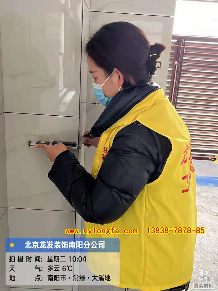 南阳常绿大溪地的瓷砖铺贴的阳角平整度检查瓷砖空鼓的检查三川玖龙台的瓷砖铺贴验收利用靠尺对墙面进行检查吊顶和造型门的木工施工对我们水电施工的电线材料的检查查看材料和细节南阳龙发装饰管...